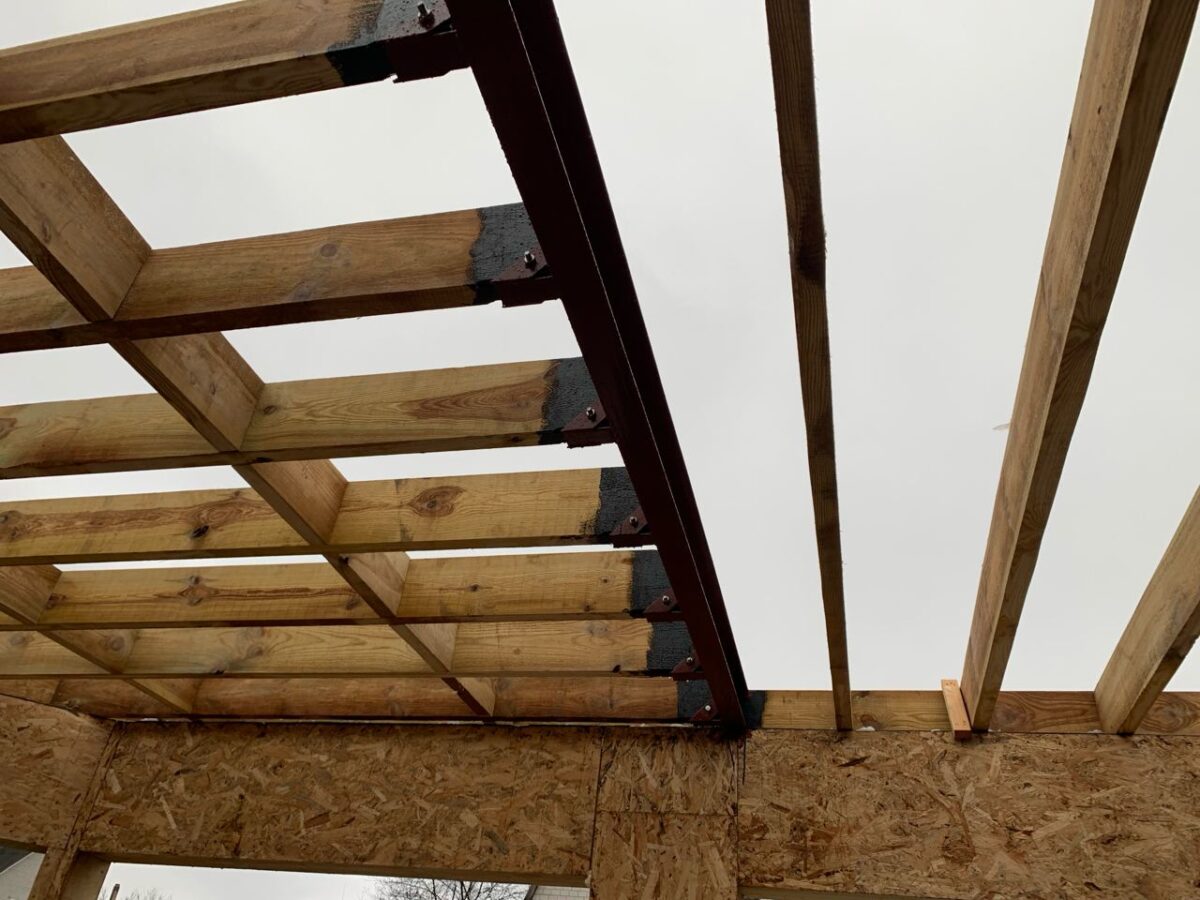 Результат этого этапа — чёткий конструктив: где достаточно бруса и СИП, а где нужно усиление металлом (если архитектура или пролёт выходят за базовые пределы).