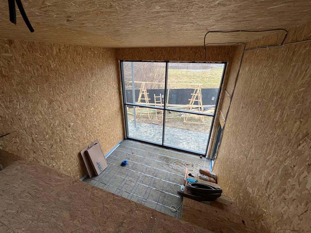 Если в проекте запланированы панорамные окна в пол, мы рекомендуем использовать доборный профиль на высоту будущей стяжки.